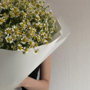 Букет из матрикарии и твидии в стильной упаковке “Луговая нежность”