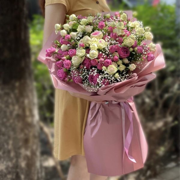 Гипсофила - 5 шт. кустовые розы и пионовидные розы - 21 шт.