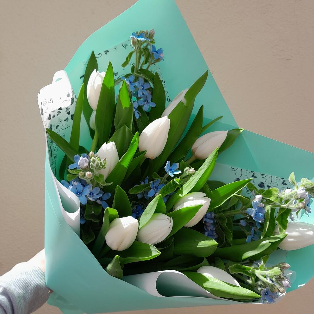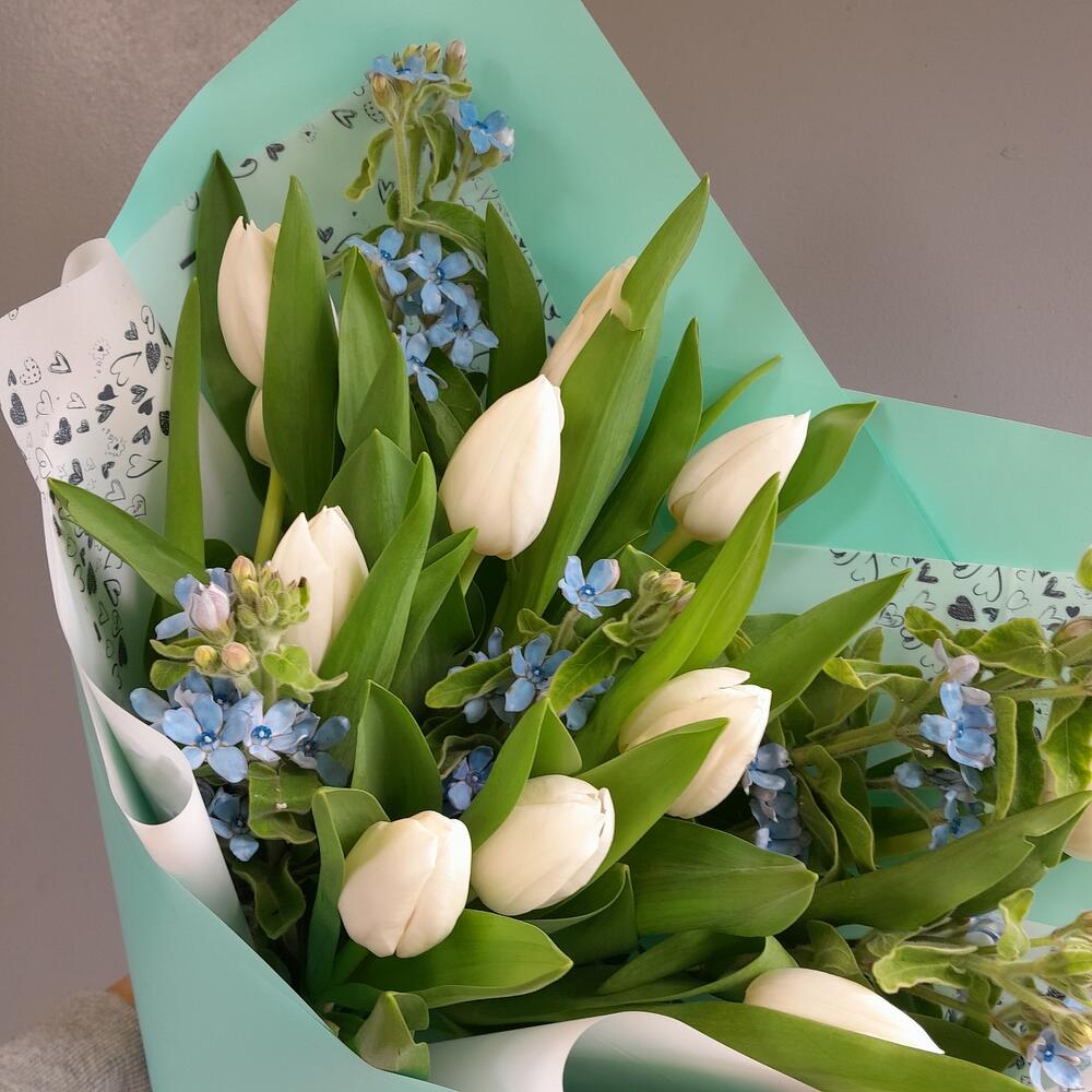 Букетик тюльпанов с оксипеталумом в Лодейном Поле